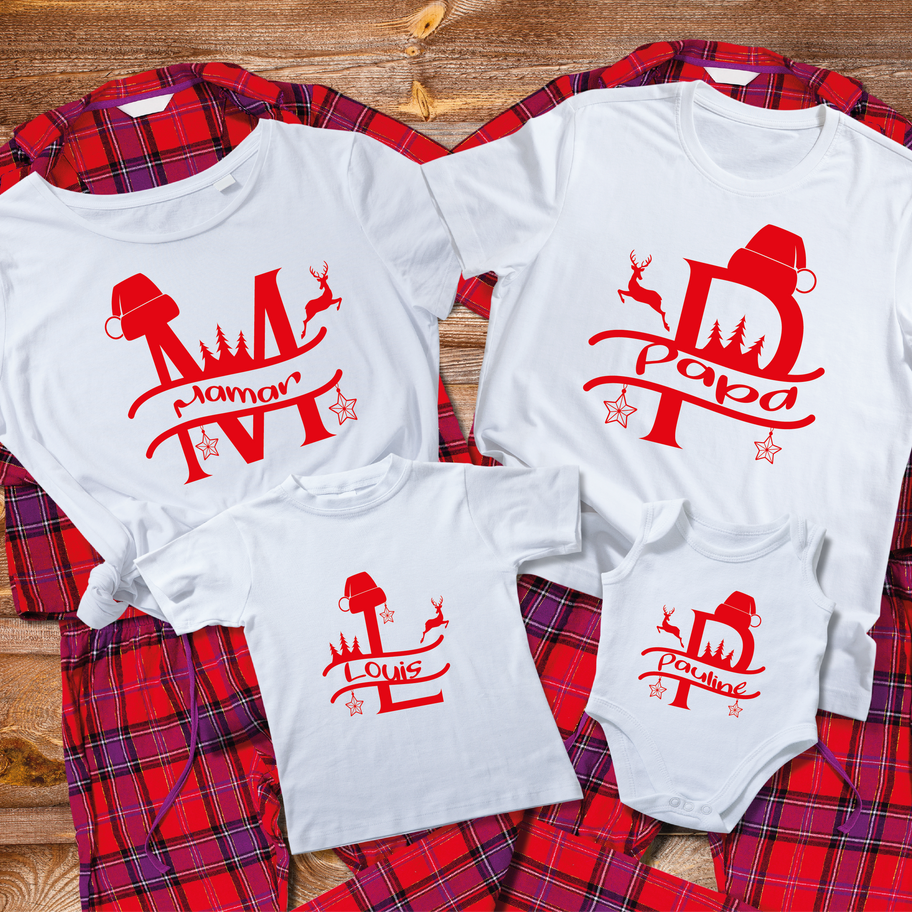 Tee-shirt noël famille personnalisé, Lettre de noël, t-shirt assorti tenue de noël.